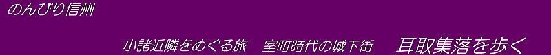 今回は、鎌倉末から室町時代、さらに戦国時代まで続いた耳取城の城下街集落を歩いて探索することにします。千曲川河岸河岸段丘を支流の小河川が浸食して形成した田切地形の高台面に形成された集落をめぐります。 ◆古い城下街の趣きを残す豊かな集落◆ |