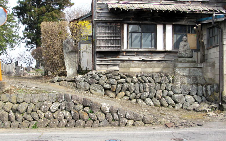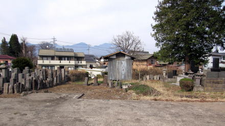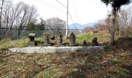 ![]() ▲古民家の軒下に置かれた弘法大師座像 ![]() ▲大乗妙典経奉納塔の年号は天明年間となている ![]() ▲桝形遺構の脇から寺院跡らしい段丘を眺める、舗装道路は旧小諸道。 ![]() ▲弘法大師座像の前から弥美登里神社のある方向を眺める ![]() ▲墓標や石仏が林立している壇上。背景は浅間山。 ![]() ▲壇上は小さな寺または堂庵があった跡のような風情 ![]() ▲耳取城遺構の観音堂曲輪跡に残る熊野権現社の石仏や祠 |