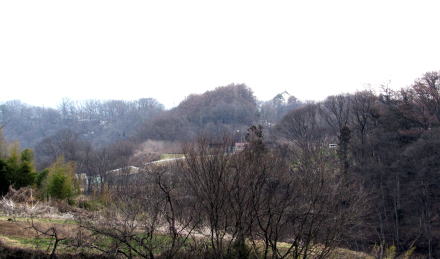 ![]() ▲比高8メートルほどの小さな岩山。これが鷹取山か。 ![]() ▲皿掛川が刻んだ谷間。この崖が耳取の北限。 ![]() ▲荒屋曲輪跡の北端に突き出した崖 ![]() ▲左の高台が荒屋曲輪跡で右の崖場が馬場跡 ![]() ▲観音堂曲輪跡は右端だけ残して道路建設のために切り崩された。 今は熊野権現社の境内で、壇上には石垣・石仏群だけがある。 ![]() ▲熊野権現社は西方の御牧原にあった密教寺院の支院だったかもしれない 熊野権現社が祀られていたということは、山岳信仰=密教修験の場があったということを意味するだろう。玄江院は、戦乱のなかで荒廃した臨済宗の禅刹、天龍山萬福寺に代わって院居館跡に曹洞宗の禅刹として創建したものだという。 萬福寺そのものは、鎌倉時代まであった密教寺院が荒廃した後、室町後期に臨済宗の僧たちによって再興されたのかもしれない。 熊野権現社は12の観音仏を祀る仏教寺院でもあって、古代に密教修験霊場に勧請創建される場合が多かった。 ![]() ▲県道脇にわずかに残る高台は観音堂曲輪(熊野権現社) ![]() ▲耳取集落の家並みを切り裂く谷崖。まるで城の堀のように切り立っている。 |