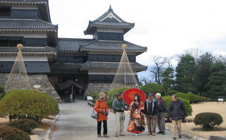 たちまちカメラマン(ほとんどは初老のおじさん)に取り囲まれました。この城でも、こんな風に入場者を手厚く歓迎してくれます。