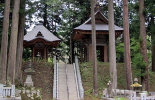 The hall connects with Nyoirindo, a Nyoirin-Kannon cathedral, with thacthed roof. The temple has two Kannondo halls. Another is on the upper terrace.