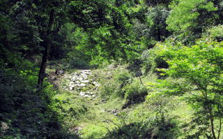 The slope and stream paved with stones are the works to prevent erosion by water, thus to avoid landsliding flood.