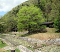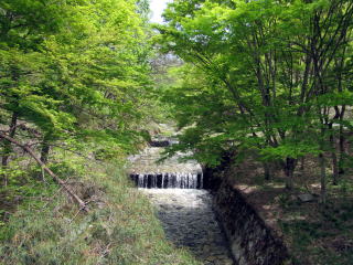 We would feel the brutlity of the nature at the headstrem zone on the steep ravine. But walking down around the stair-stream, we would feel easy to see the calm landscape. The threat of the nature is under controled by the stone-work.