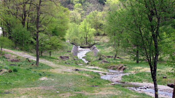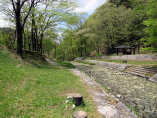 Because the ravin-sides and -bottom is covered with stone-pavement all over to prevent the slide or the severe transformation of land, it is possible for us to walk around there.