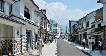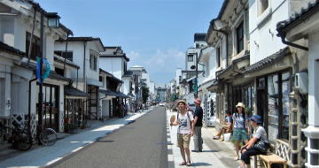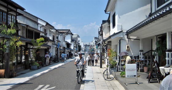 山岳に取り巻かれた松本は陽射しは強いが湿度は低いので、真夏でも街歩きは楽しい。とりわけ、白壁土蔵造りの商家風町屋が並ぶ中町通りは、夏の強い陽射しが似つかわしい。