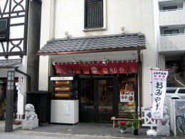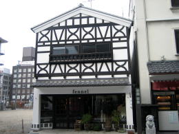 通りに面している建物は低く抑えてあって、できるだけ和風の「白壁となまこ壁」の体裁に合わせてあります。店舗のディスプレイや商品展示は控えめにしてあります。