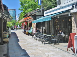 ▼通りの外はモダンなビル街