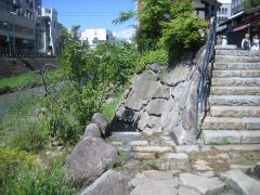 ▲橋のたもとには河床に下りる階段