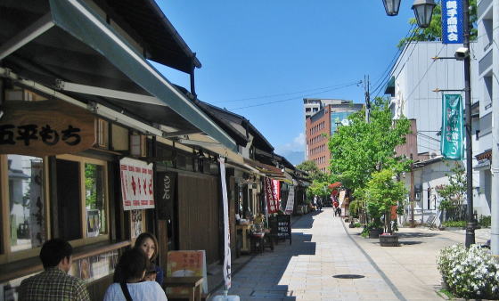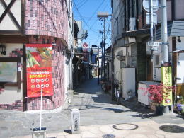 通りを横切る小路のなかに縄手横丁がある。この小径には、小料理屋、焼き鳥屋など庶民的な小さな店が軒を連ねる。