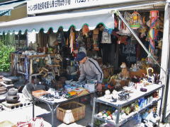 ▲古道具屋店 店頭は雑多な品物でにぎやか