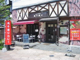 ▲小さな店舗の裏は川。河岸段丘の下は女鳥羽川