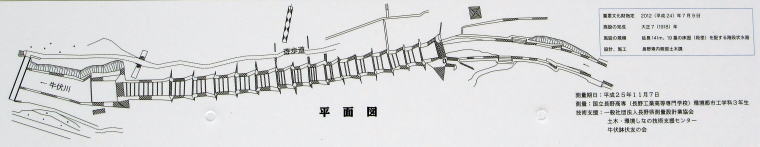 牛伏川の階段流路は、1911年頃にヨーロッパに派遣された技師がフランスで学んだ工法にもとづいて設計され、1917〜18年に施工されました。