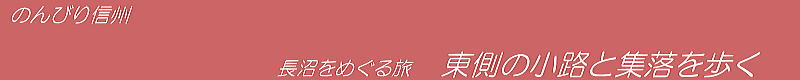 さて、赤沼公園から妙願寺前まで戻り、北東に向かう小径を歩きましょう。この通りは道の東側に家並みが続き、西側にはリンゴ園を挟んで赤沼公会堂があります。