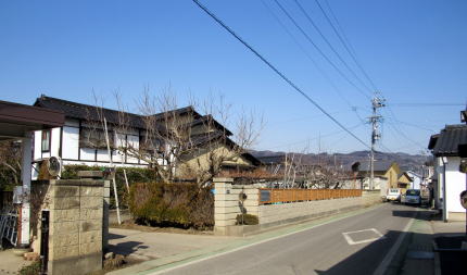 左手は修復後の土蔵: 松代道の東側からの眺め