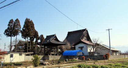 津野の集落を出て北に歩くと、まもなく赤沼の三叉路にいたります。向かって左の道が北国街道松代道で、右が赤沼公園や伊勢社に向かう道です。私は、ひとまず左手の旧街道を歩いて、妙願寺の前の分岐を大田神社、赤沼交差点方面に進むことにします。旧街道沿いの家並みを一瞥したのち、赤沼分家居館跡の界隈の家並みを見て回ります。