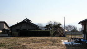 数年前までは、旧街道沿いに古民家の家並みが続いていたのですが、今では、先年の水害で壊れたため、公費解体で撤去されたために敷地が空き地になったところが何か所もあります。美しい庭園の植栽や庭石だけが痕跡として残っている屋敷跡も目立ちます。