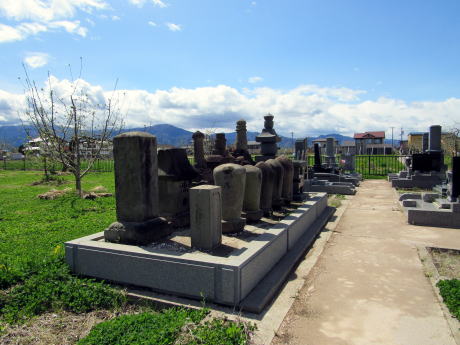 上杉家の庇護を受けていたようですが、戦火のため堂宇は焼失し、その後再建され、佐久間藩消滅後に長沼の法珠院跡に移転し、霊山寺と寺号を改めたようです。ところが、1741~43年(寛保年間)にかけて2度の大水害で流失して寺は失われたそうです。 【⇒関連記事】