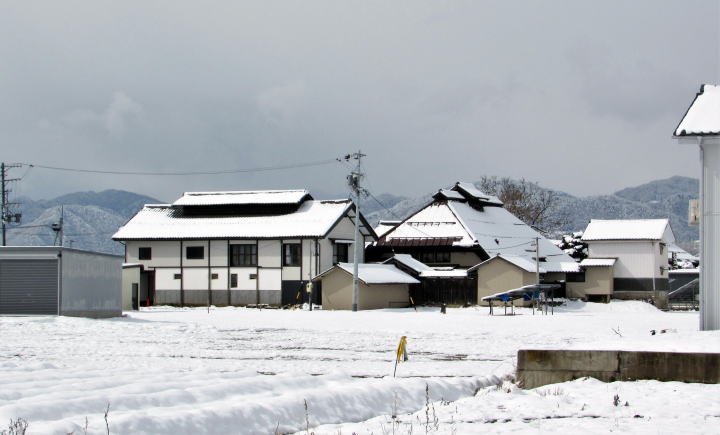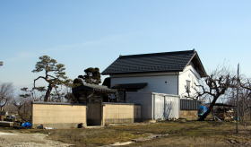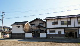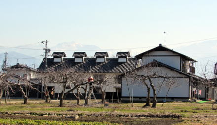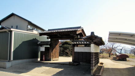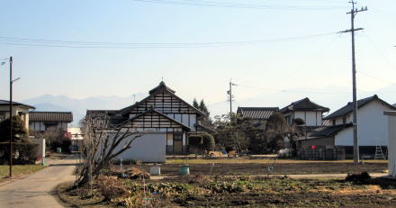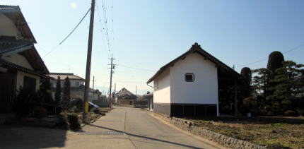 先年の洪水がなければ、旧街道沿いには長屋門を備えた古民家がたくさん残っていたはずです。長屋門は、敷地の表通り側に蔵や作業屋を立てて、通りと屋敷の仕切りとする門で、中下級武士の家門に多い造りです。もちろん江戸時代には、屋根は茅葺きまたは草葺きで白壁ではなく、土壁のままでしたが。