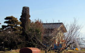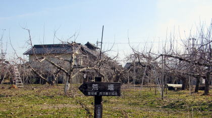 ▲果樹園の跡に立つ三界万霊塔は宗栄寺の跡