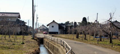 もちろん、廃藩後に多くの家臣は長沼で帰農したようですから、広い敷地を農耕地に変えた家門も多かったでしょう。街道沿いで家並みに割り込んでいる果樹園などの農耕地は、かつては武家屋敷の庭園や家屋の跡なのかもしれません。