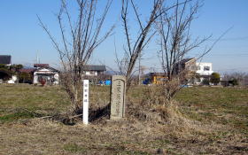 さて、長沼城跡から歩き始め、内町公会堂のひとつ南の小路を西に曲がって荒堰沿いの小路まで行くことにしました。その途中で草原のなかに「三界万霊塔」があって、その脇に「宗栄寺跡」という標柱が立っています。宗栄寺は、古くは地蔵院という寺号で荒廃していたものを1737年にこの地に移し 玅笑寺の庇護下で再興された寺だとか。その後、さらに善光寺の西方の往生寺に移って尼寺となったといわれています。