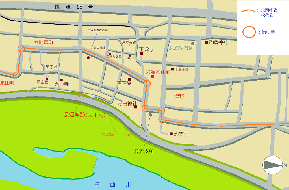 この絵地図は、長沼のなかでも六地蔵町・内町・津野を詳しく案内するものです。