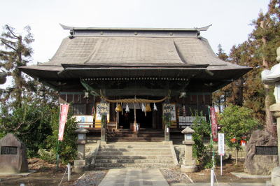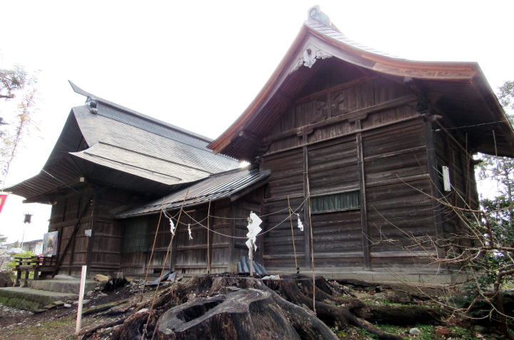 社伝では、信玄は木像、笛、薙鎌などを奉納し、自らケヤキを植えたそうです。社殿脇の巨大な切り株がそれなのでしょうか。