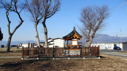 平安時代には千曲川は、現在の流路よりも1キロメートル近く東側を流れていたと推定されます。そこで、守田神社は往古には現在地から数百メートル東(ないし東北東)の位置にあったと見られ、武田家が築いた長沼城の鬼門とされていたとも伝えられています。