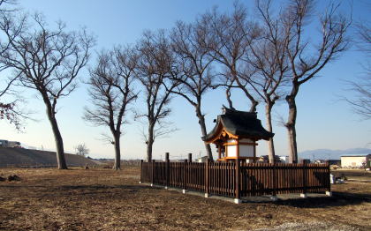ところが1615年(元和元年)、洪水によって社殿などがことごとく流失してしまいます。おりしも翌年、江戸幕府の命によって佐久間家が長沼城主に着任します。佐久間家は縄張りを再編して城郭を改修築し、そのさいに17世紀半ば(正保年間)に城の二ノ丸北側に神社を映して再建しました。