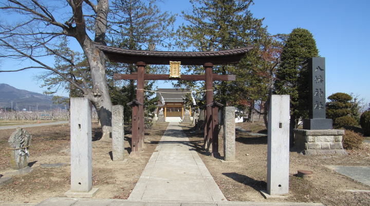 1555年に長沼を征服した武田信玄もまた武家の神であるこの八幡宮を尊崇し、永禄年間には矢場八幡大神という社号を冠して宝物神器を奉納しました。ところが、その宝物神器は1740年代(寛保年間)の大洪水で流失してしまったとか。