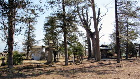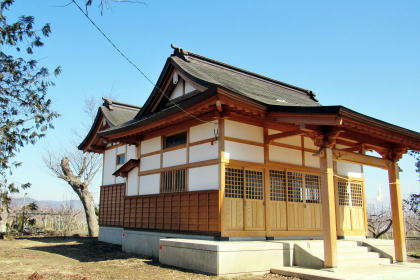 拝殿: 背後の樹林は大半が失われたようだ