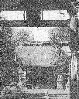 中央は神社の本殿: 右端が拝殿