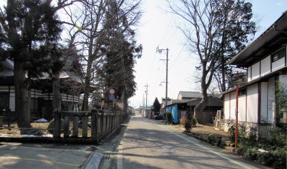 開創から大田神社境内を振り返る: 街道を挟んで右端は社務所
