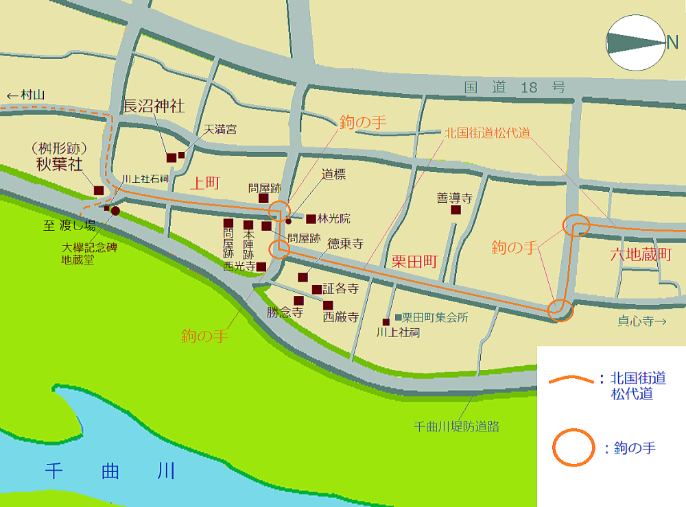 それまでは、千曲川東岸の北国街道松代道を通り、川田宿、福島宿を経て布野の渡しで千曲川を船で渡って長沼宿にいたる経路だけだったのです。そして、大豆島から長沼にいたる道ができてからも、昭和期までは、松代道が交通の幹線であり続けました。