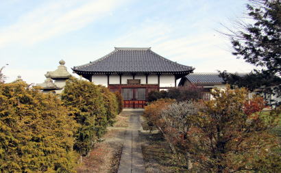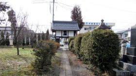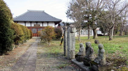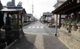 山門前に立って南を眺めると街道を桝形跡まで一望できます。往時、国道18号から東進する道路はなく、寺の西側には広大な田野が横たわっていました。