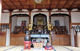 ▲本堂内部の様子:立派な須弥壇と格天井