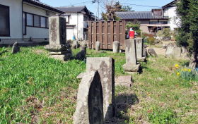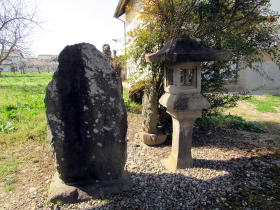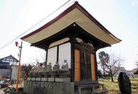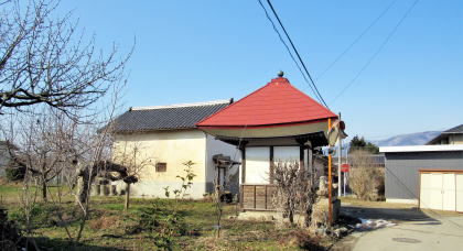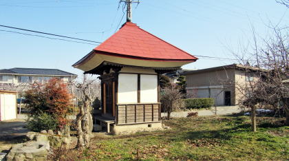 今ではここに赤沼上組の集会所があります。その周囲には、いくつも墓石や石塔、石仏の群が残されています。隣接する民家の敷地には、古くから伝わる石の祠が立っていて、屋敷神として丁寧に祀られています。
