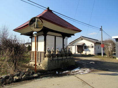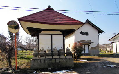 地蔵堂は内部の床面積が2畳ほどの小さなものです。中には延命地蔵が祀られているようです。お堂の北側の壁の前にも小径に面して六地蔵が並んでいます。石塔・石仏群が並ぶこの地に立つと、過ぎ去っていった時代が偲ばれます。
