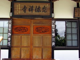 ▲本堂入り口の扁額と扉