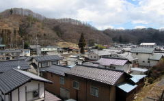 背後の丘の上からの旧宿場街の眺め