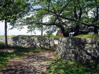 ▲石垣でつくられた本格的な桝形(佐久市田口の龍岡城の桝形)。街道から城下町への入り口に設けられていたもの。