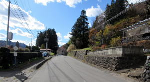 中山道を下りながら下和田界隈の街道沿いの名所や史跡を訪ねてみましょう。 写真:下和田上組から中組あたり。尾根の麓、街道沿いに集落が広がる。 |