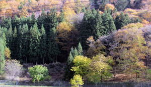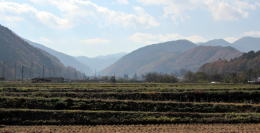 ▲立場バス停の近くの風景。街道は依田川から距離をおいて山麓を通る。