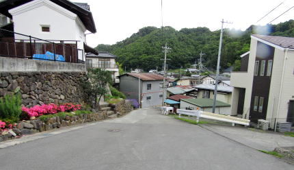 坂を降り切ってから長坂橋までの道は、低い場所だったので、鹿曲川の越水や氾濫による水害の程度はひどかったでしょう。したがって、現在のような家並みはつくりようがなかったはずです。