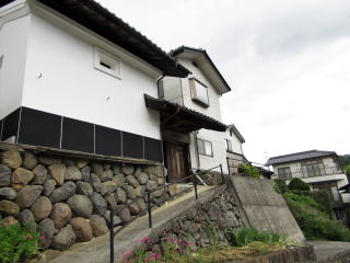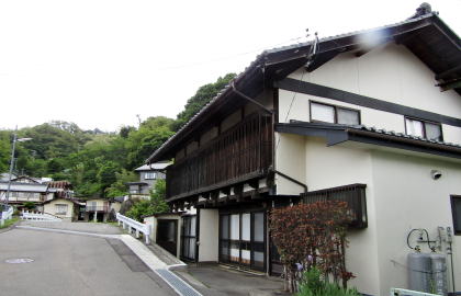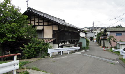 長坂橋の西の袂には、今は古民家風の出梁造りの住宅があります。きれいに修復してある古民家なのでしょうか。水害の危険が大きいこんな川岸に家を建てるようになったのは、早くても明治以降(とくに昭和期)だと思いますが、わざわざ伝統的な造りの家を建てたのでしょうか。それとも、ここに古民家を移築したのでしょうか。