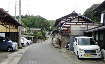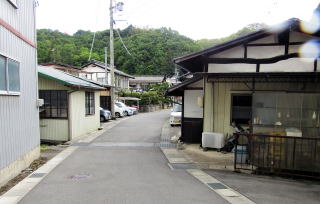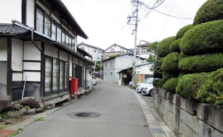 坂の下の道路の曲がり具合は、現在は相当に緩くなっています。したがって、道なりに応じて家並みの形は違っていました。もっと北側に凹んでいたというか、奥まった配置だったでしょう。今、緩やかなカーヴ沿いに並ぶ作業屋などは、新たな道路ができてからのもので、往時はそこに建物はなかったはずです。