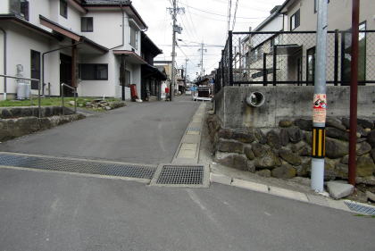 坂の下の石垣桝形のやや上には、宿場の出入り口を画す木戸が設けられていたと伝えられています。八幡方面から来た旅人は、石垣桝形を抜けてから木戸をくぐったそうです。それから坂道をのぼって、また鉤の手を右に曲がり、少し歩いてさらにまた右に曲がって街に入ったのです。たぶん、この宿場は桝形がくどいと感じたはずです。