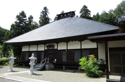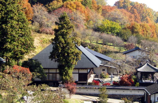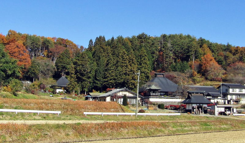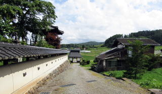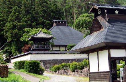 寺がある丘陵斜面の地形は、中世の豪族領主の居館あるは城館を構えるのに最適な形状をなしています。そして、段丘をのぼりながら堂宇を配置してある様子は、まさに軽防備の段郭を連ねているように見えます。地形と堂宇の配置は、小布施町の岩松院や佐久市田口の蕃松院などが領主城館の跡地または隣接地に建立された経緯を彷彿させます。
