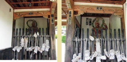 本堂の左背後(北西側)には護摩堂=不動明王堂が置かれています。ここが、境内の中心・要の位置で、不動明王が寺域全体を鎮護しているというイメイジでしょうか。不動明王は、古代インドではシヴァ神だった仏法の守護神で、日本には空海が持ち帰り、真言の大本尊である大日如来の化身だともいわれています。真言の祈祷としての護摩は、炎を添えて不動明王に祈る作法なのだとか。護摩堂の本尊は不動明王なのです。