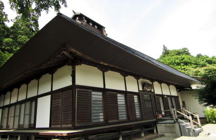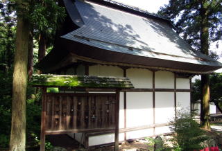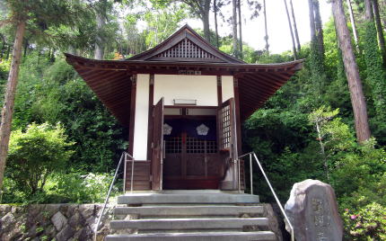 その北側奥には小さな観音堂があります。聖観音像を祀る小堂です。もともとは鎌倉時代につくられた仏像でしたが、近年に焼失したのち、最近復元されて、このお堂に安置されました。この寺院では、三十三観音のひとつ、白衣観音が釈迦如来を象徴するものとされてきたので、聖観音はそういう文脈で本尊のひとつとなったのかもしれません、